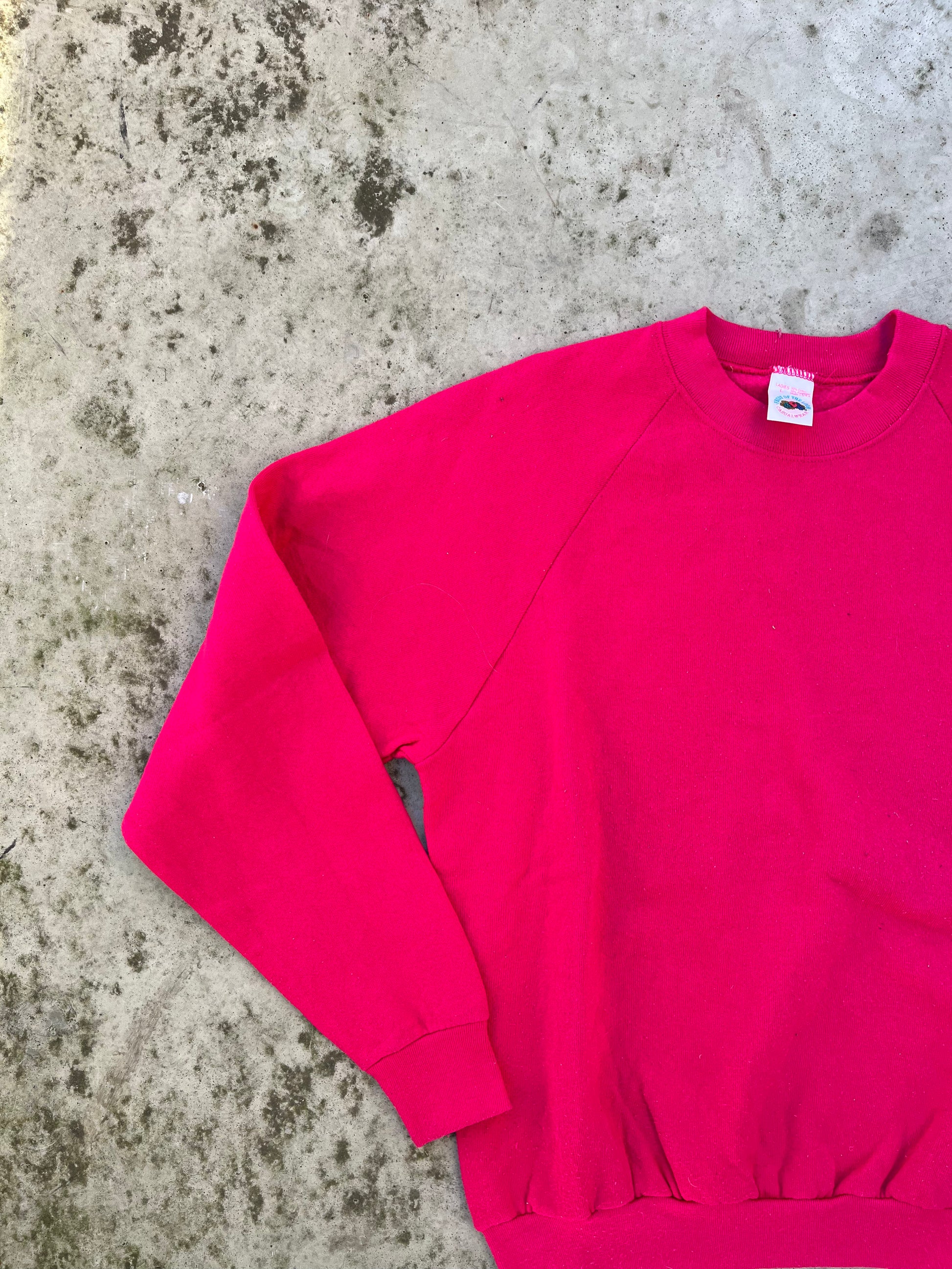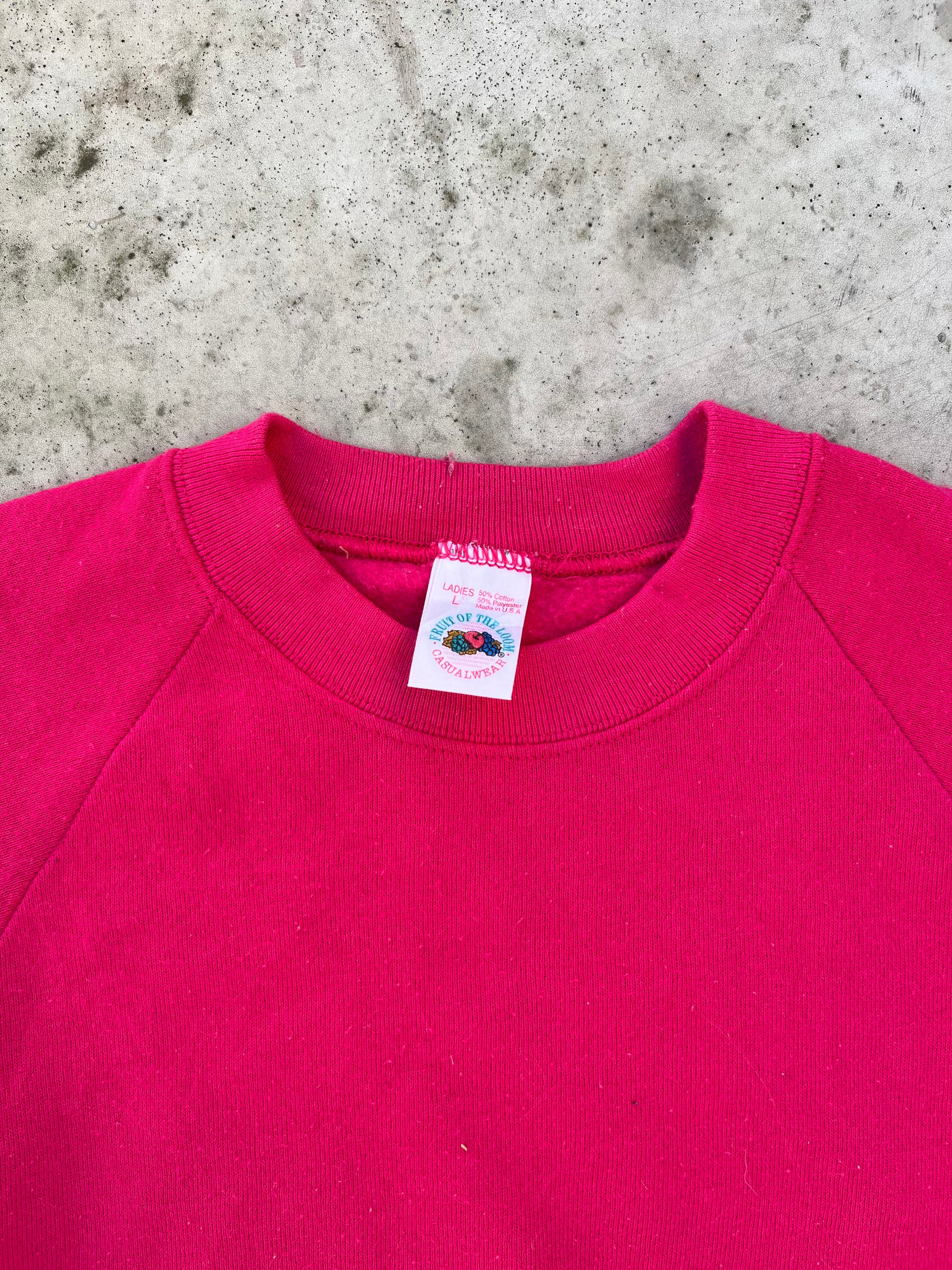 The unique pink color adds a touch of femininity to the sweatshirt, making it a great choice for those who want to showcase their style in a playful way. The Fruit of the Loom logo on the front adds a touch of nostalgia, showcasing the wearer's appreciation for classic vintage fashion.